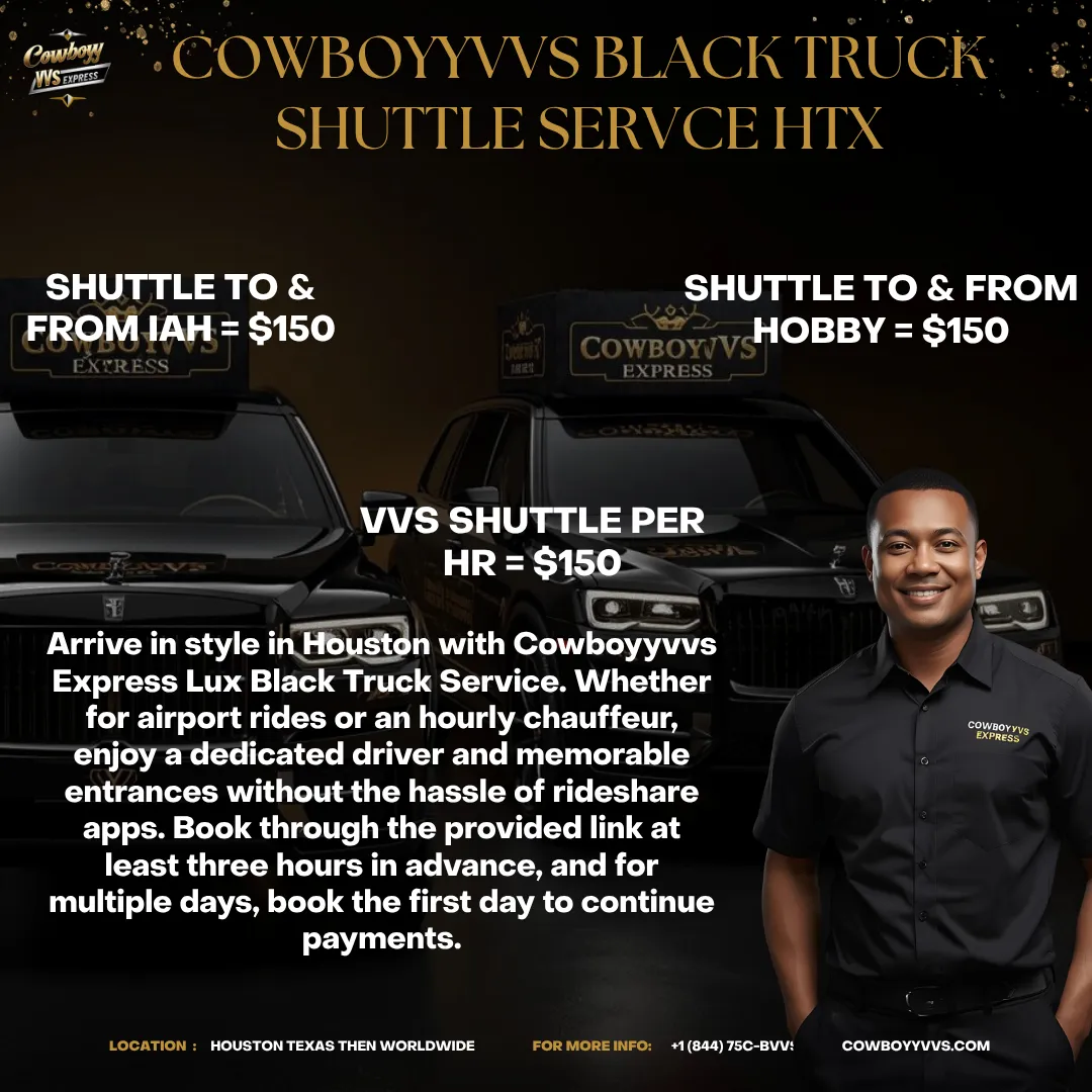 Arrive and shine with Cowboyyvvs Express Lux Black Truck Service—Houston’s most stylish way to travel.